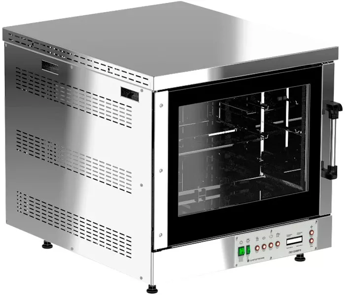 Печь конвекционная электрическая Тулаторгтехника ПКУ-530МРЭ с электронным блоком управления используется для тепловой обработки различных продуктов в закрытой камере, в которой обеспечена принудительная, равномерная циркуляция (конвекция) нагретого воздуха в рабочем объёме.