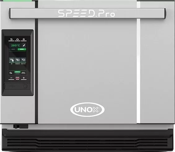 Печь Unox серии BakerLux Speed.Pro - первая в мире высокоскоростная печь, сочетающая два режима приготовления – Bake – традиционный конвекционный режим и Speed – высокоскоростной режим, сочетающий конвекционный и микроволновый нагрев на 1 уровень.