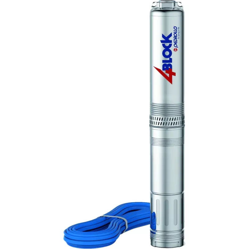 Насос для скважины Pedrollo характеризуется прочной конструкцией. Двигатель крепится к насосной части с помощью шлицевой муфты из металла. Рабочие колеса сделаны из высокопрочного поликарбоната марки Lexan 141-R. Корпус, вал и фильтр выполнены из нержавеющей стали. В комплект поставки входит 3-жильный плоский кабель длиной 20 м.