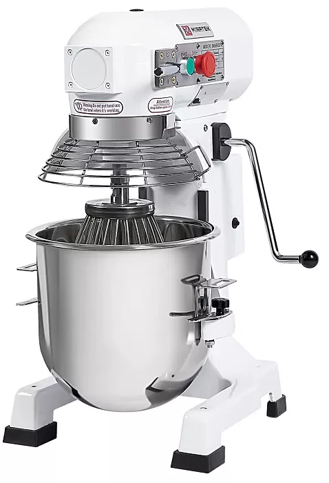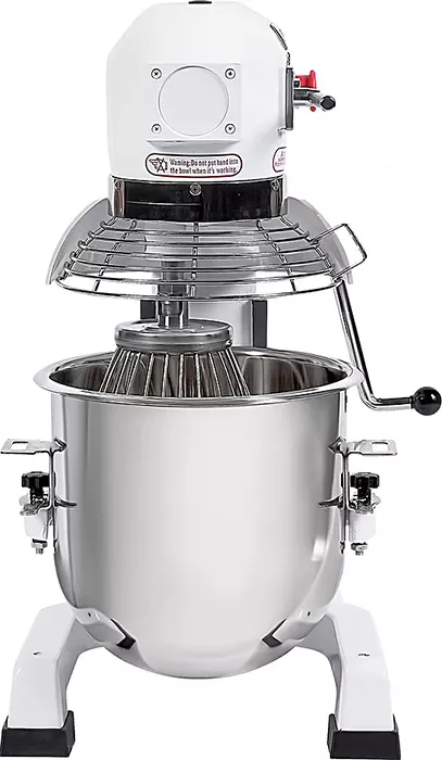 Миксер напряжением 220 В с установленной дежой из пищевой нержавеющей стали AISI-304.Венчик для взбивания самых различных кремовых масс: заварных, сливочных, белковых, сметанных, творожных и так далее. Также используется для перемешивания желеобразных масс, сиропов, соусов, муссов и «легких» эмульсий.
