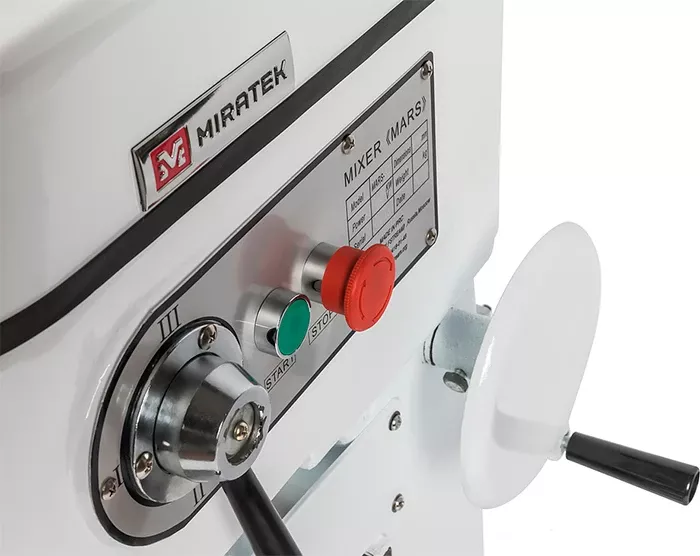 • Механический (поворотный маховик) привод подъема дежи.