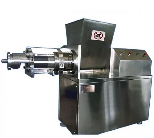 Основным рабочим элементом пресса является шнек. С его помощью осуществляется подача сырья и создается необходимое для последующей обвалки давление. Оно при работе устройства регулируется в зависимости от количества загружаемого мяса и конечного продукта. Перед обвалкой мясо птицы необходимо охладить до температуры 0...4 _C. Во время этого процесса происходит также дробление кости, в результате чего снижается выработка неликвидной продукции. Выход конечного продукта осуществляется через щелевую гильзу-фильтр. Конструкция ее выполнена в виде сепарационных колец по примеру европейского оборудования. На выходе получается практически готовая к дальнейшему производству мясных полуфабрикатов продукция. Отходы обвалки в виде костного остатка удаляются при помощи бокового отверстия в корпусе обвалочной головки.