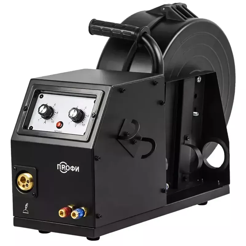 - 4-х роликовый металлический механизм подачи проволоки. Возможно установить катушку с проволокой весом до 15 кг. В подающем механизме установлены ролики 30х10х12 для стальной проволоки диаметром 0,8-1,0 мм.