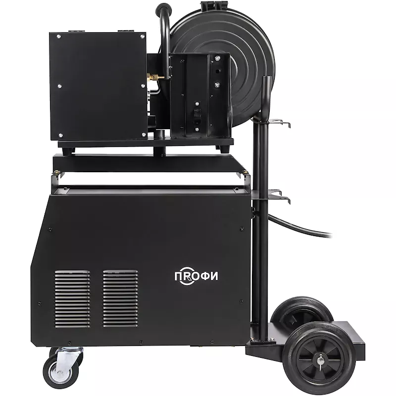 Сварочный полуавтомат ПТК ПРОФИ MIG 500 F поставляется в сборе с тележкой-платформой, которая обеспечивает более легкую и комфортную эксплуатацию оборудования. Тележка обладает надежной усиленной конструкцией. На нее можно установить сварочный источник, выносной подающий механизм, блок жидкостного охлаждения и газовый баллон объемом 40 литров.