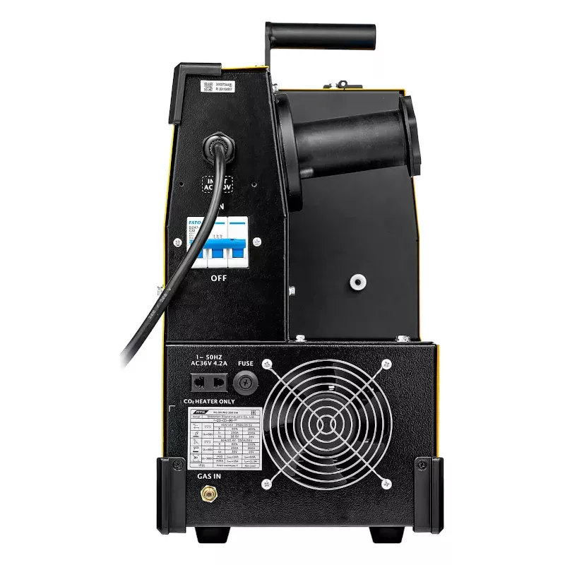 - Металлический механизм подачи проволоки. Используется сварочная проволока диаметром от 0,8 до 1,2 мм. Можно установить катушку с проволокой весом до 18 кг (D300) и регулировать скорость подачи проволоки от 3 до 13 м/мин.