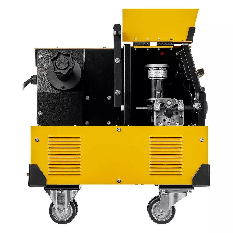 - Металлический механизм подачи проволоки. Используется сварочная проволока диаметром от 0,8 до 1,2 мм. Можно установить катушку с проволокой весом до 18 кг (D300) и регулировать скорость подачи проволоки от 3 до 16 м/мин.