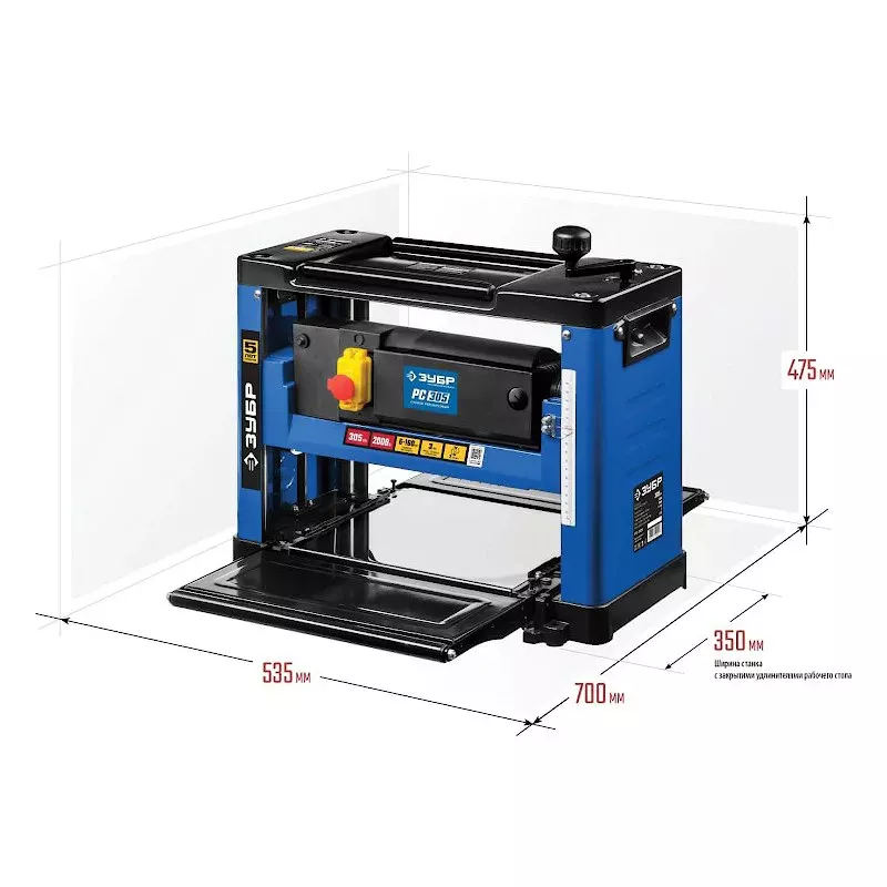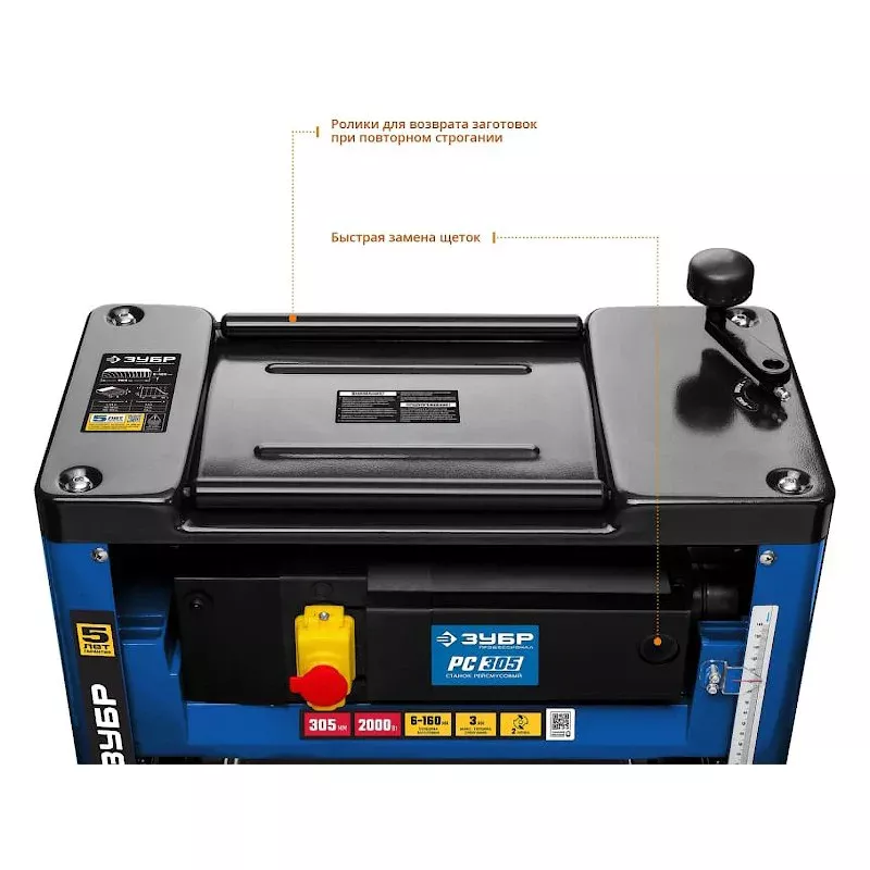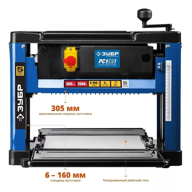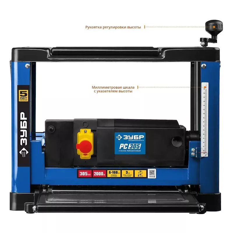 Рейсмусовый станок ЗУБР РС-305 – переносная модель для обработки заготовок из древесины шириной до 305 мм. Для комфортного использования предусмотрены удлинители рабочего стола, транспортировочные ручки и двигатель с системой защиты.