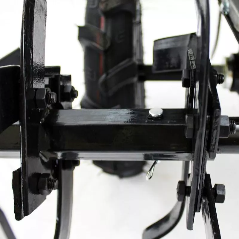 При установке навесного оборудования функции машины увеличиваются, например вы можете использовать ее как газонокосилку, плуг или окучник. Для передвижения инструмента по различным видам почвы и сложному рельефу предусмотрено несколько скоростей, в том числе обратных ход, который помогает достать застрявший культиватор.