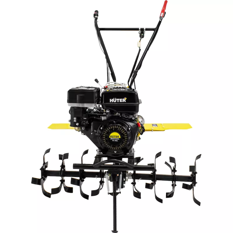 Сельскохозяйственная машина Huter MK-11000PЕ с шириной захвата фрезы 115 см предназначена для обработки больших участков земли. В отличие от остальных моделей линейки, мотоблок оборудован электростартером для удобного и быстрого зажигания мотора одним поворотом ключа.
