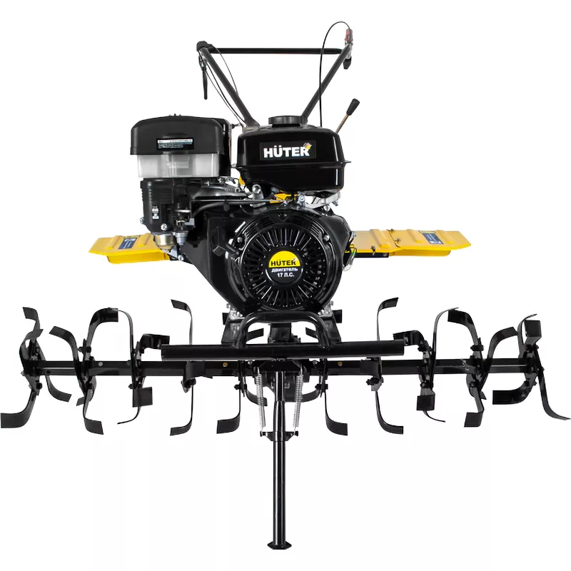Бензиновый мотоблок HUTER МК-17000P используется для культивации почвы и обладает мощностью 12,5 кВт. Крупные колеса диаметром 30,5 см обеспечивают простое управление машиной.