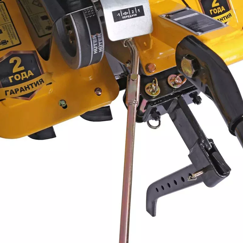 Сельскохозяйственная машина HUTER МК-7000Р-10 поставляется с большими колесами, диаметр которых составляет 10 см. Благодаря этому устройство не будет проваливаться в рыхлый грунт.