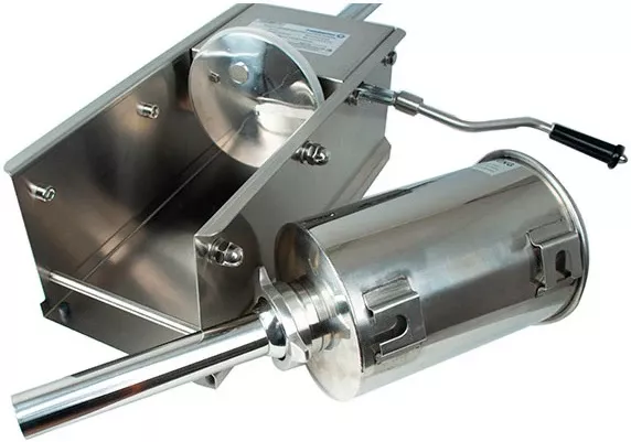 Колбасные шприцы отличаются размерами выходных воронок, что позволяет найти подходящую модель для изготовления сосисок или колбас.