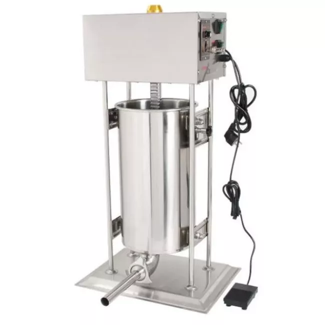 Шприц колбасный Hualian Machinery TV-15L (электрический привод) предназначен для набивки в искусственную или натуральную оболочку различных видов колбасных изделий: колбас, сосисок, сарделек, купат, шпикачек и пр. Также его можно использовать для набивки в оболочку паштетов, овощных, сырных, творожных и других пастообразных масс. Аппарат абсолютно универсален и может использоваться для набивки самых разнообразных оболочек – натуральных, коллагеновых, целлюлозных, фиброузных, полиамидных, пропиленовых и т.д.