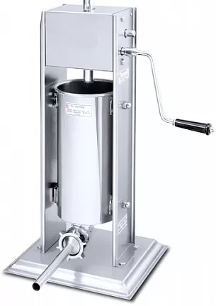 Шприц колбасный Hualian Machinery TV-5L предназначен для приготовления колбас, сосисок, сарделек и шпикачек. Отличный выбор для небольших производств, ритейла, ресторанов и даже для домашнего использования.Принцип работы достаточно прост: сырье загружается в бункер, вращением маховика масса проталкивается к цевке и выходит уже непосредственно в оболочку. Таким образом, оператор может контролировать скорость и объем наполнения. Консистенция и структура фарша может быть самой разнообразной, вместе с аппаратом поставляется комплект сменных цевок – под оболочку различного диаметра