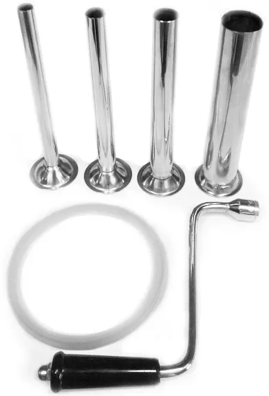 В комплекте 4 насадки из нержавеющей стали (диаметр: 3,8; 2,5; 1,9; 1,5 см)