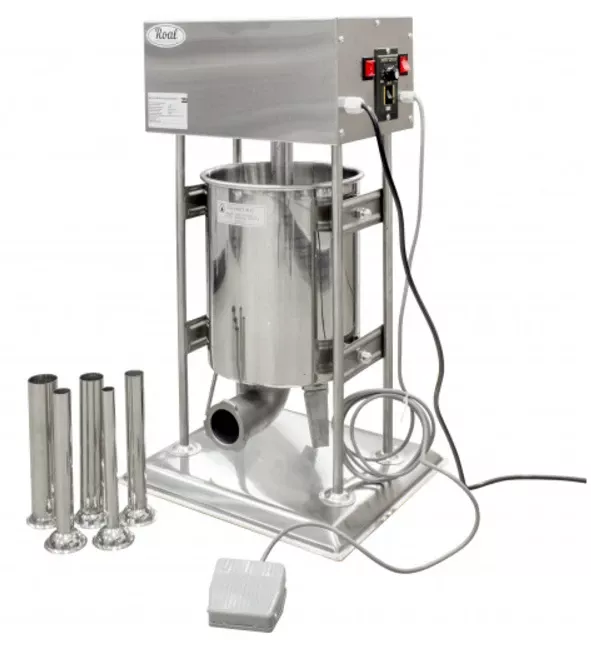 Шприц колбасный Roal DD25L предназначен для набивки в искусственную или натуральную оболочку различных видов колбасных изделий: колбас, сосисок, сарделек, купат и т.п. Также можно применять для набивки паштетов, творожных масс и других аналогичных плотных, вязких продуктов.