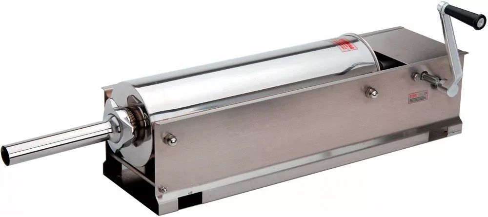 Принцип работы этих механизмов достаточно прост: в цилиндр аппарата помещают заранее приготовленный фарш, специальный поршень проталкивает продукт к воронке, на которой надета оболочка. Колбасные шприцы отличаются размерами выходных воронок, что позволяет найти подходящую модель для изготовления сосисок или колбас.