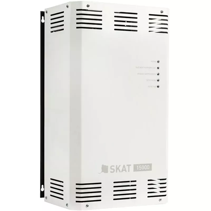 Стабилизатор напряжения SKAT ST-15000 обеспечивает качественное питание нагрузки в широком рабочем диапазоне входного напряжения от 140 до 275 В, расширенный диапазон составляет 80–285 В. Точность стабилизации достигает 7%; скорость переключения — 0,01 секунды. Стабилизатор рассчитан на подключение к нему оборудования с потребляемой номинальной мощностью до 11000 Вт.