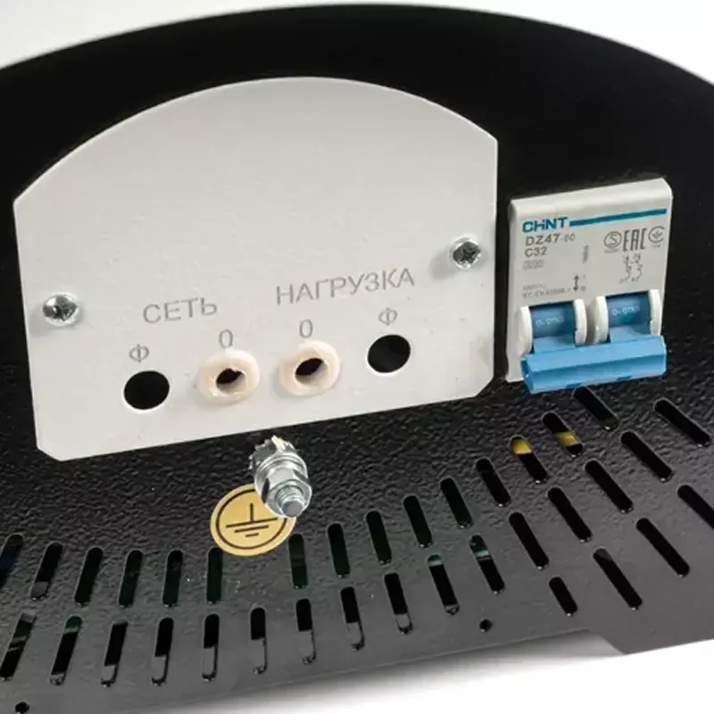 Устройство имеет встроенный быстродействующий автоматический выключатель для защиты питающей сети от перегрузки и короткого замыкания. Противопожарный датчик температуры срабатывает при перегреве, отключая нагрузку. Светодиодные индикаторы на передней панели сигнализируют об аварийной ситуации.