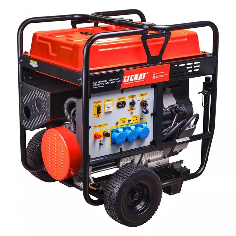 Однофазный бензиновый генератор СКАТ УГБ-16000Е мощностью 16 кВт обеспечит электроэнергией офис, коттедж, фермерское хозяйство, магазин, строительную площадку, производственный цех.