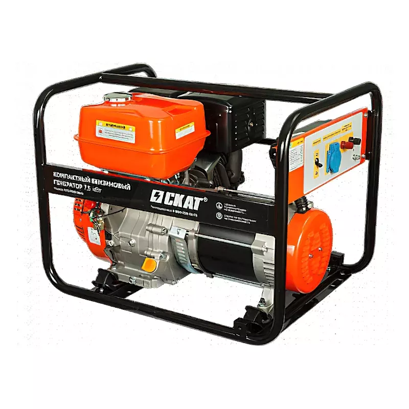 Компактный бензиновый генератор СКАТ УГБ-7500 Basic мощностью 7,5 кВт представляет собой мобильное оборудование как для бытового, так и для профессионального использования. Служит источником питания различных приборов, когда нет возможности подключится к электросети.