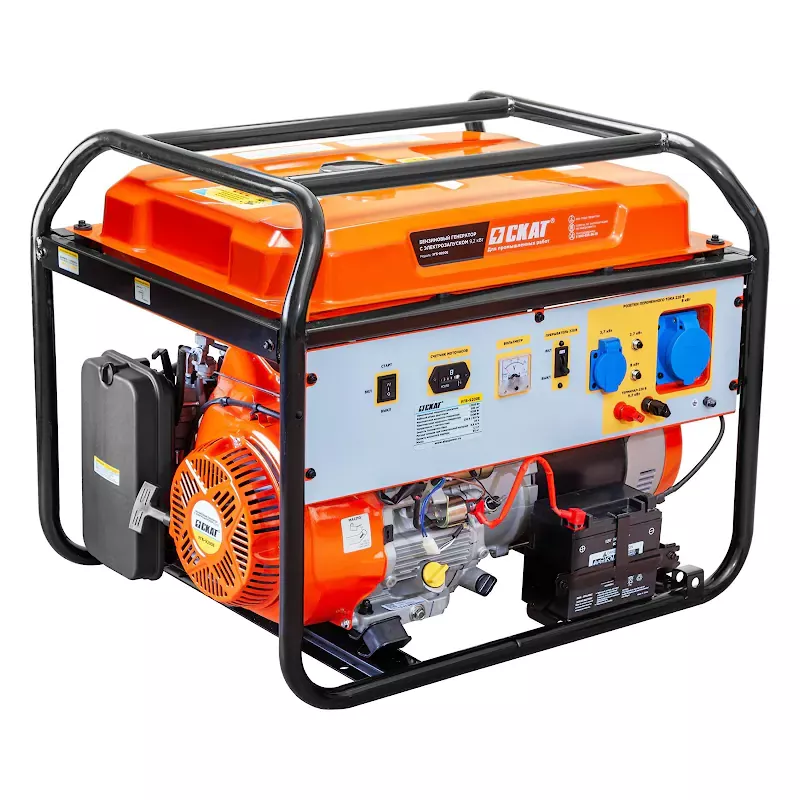Бензиновый генератор СКАТ УГБ-9200Е предназначен для резервного энергоснабжения техники, приборов и электроинструмента с максимальной суммарной мощностью до 9,7 кВт. Передвижная электростанция может служить аварийным источником питания на объектах, для которых критически важна бесперебойность энергоснабжения, таких как, АЗС, объекты выездной торговли, фельдшерские медицинские пункты. Мощности генератора достаточно для резервного электропитания частного дома, дачи или офиса, обеспечения энергией небольшой фермы, стройплощадки, аварийной или монтажной бригады.