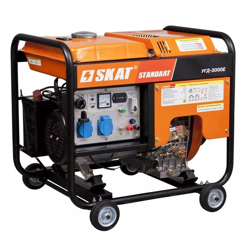 Дизельный генератор СКАТ УГД-3000Е мощностью 3 кВт обеспечит электроэнергией дачу, коттедж, строительную площадку и станет отличным помощником ремонтным, монтажным, аварийным бригадам.