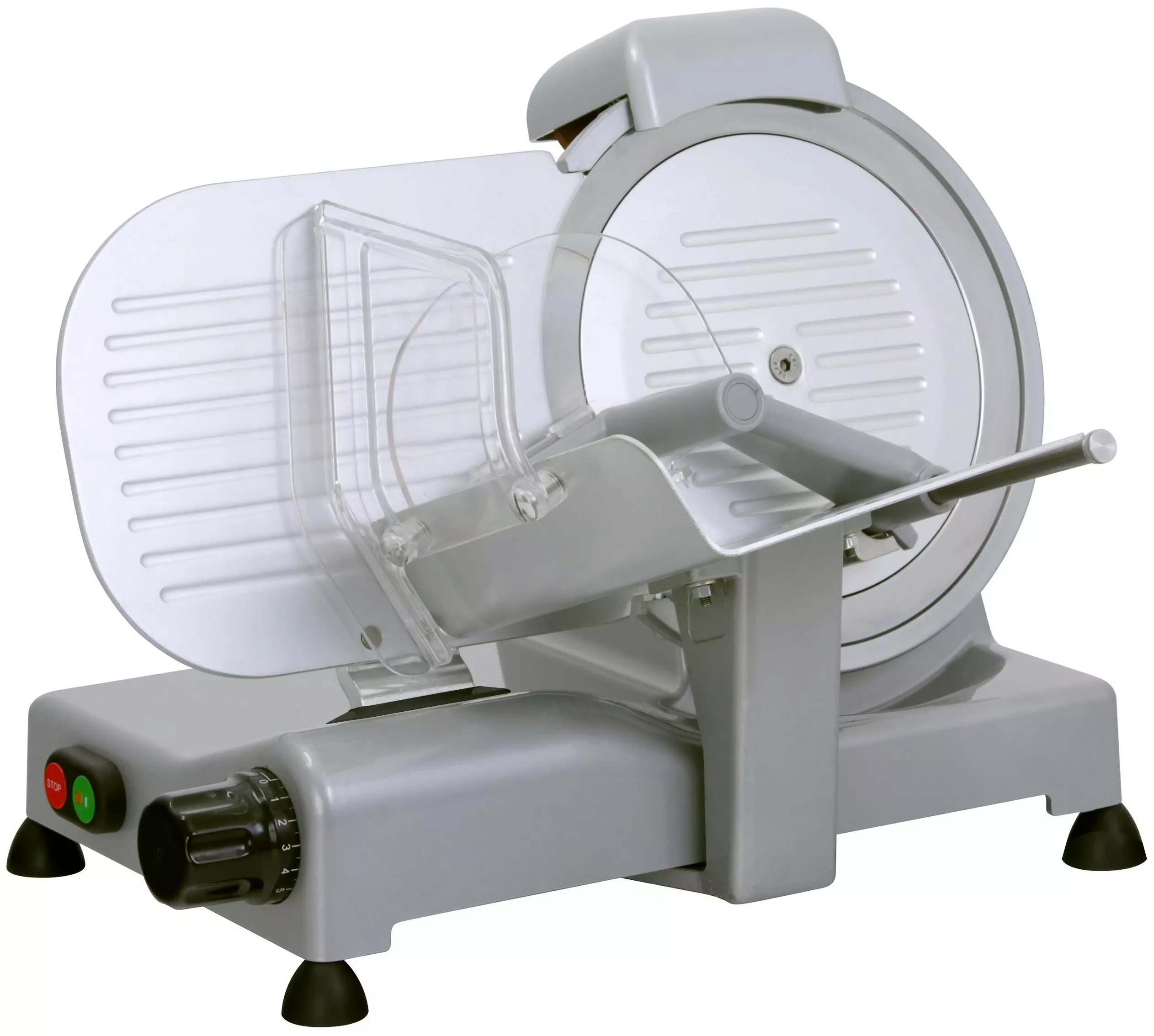 Наличие резиновых ножек в нижней части электрической ломтерезки препятствует вибрации и скольжению, что позволяет быстро и удобно нарезать колбасу, мясо, рыбу. Приборы модели ES 220 являются простыми в применении. Нарезаемые продукты закрепляются в лотке посредством прижимного элемента. Используя рукоятку и ручку толкателя, каретка непрерывно перемещается над острым лезвием вперёд-назад, при этом слайсер имеет плавный ход.