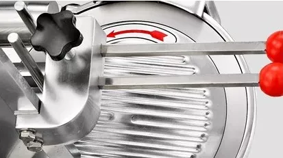 Дисковый нож из закаленной хромированной стали, а также мощный вентилируемый мотор обеспечат качественную нарезку продукта.