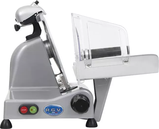 Слайсер Rgv LUXURY 20 GS-R PROF предназначен для профессионального использования. Полуавтоматический слайсер для нарезки мяса, сыра, колбасных изделий и других продуктов применяется на крупных предприятиях общественного питания, фабриках-кухнях, занимающихся производством полуфабрикатов.