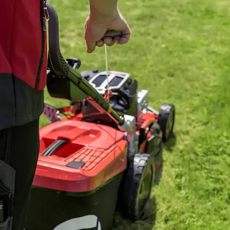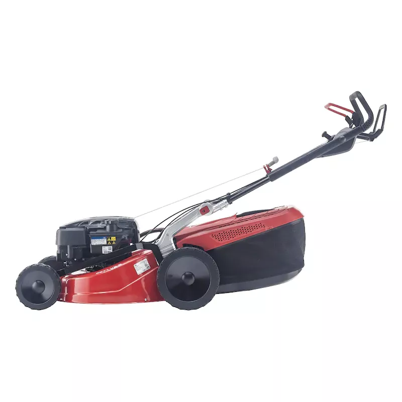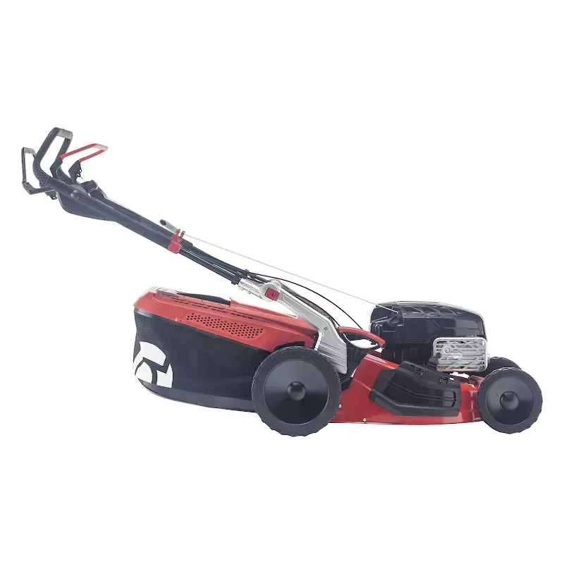 В передней части бензиновой газонокосилки расположена транспортировочная ручка. За неё удобно приподнимать модель от земли. Например, чтобы перенести через бордюр или ступеньки.
