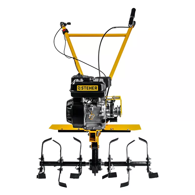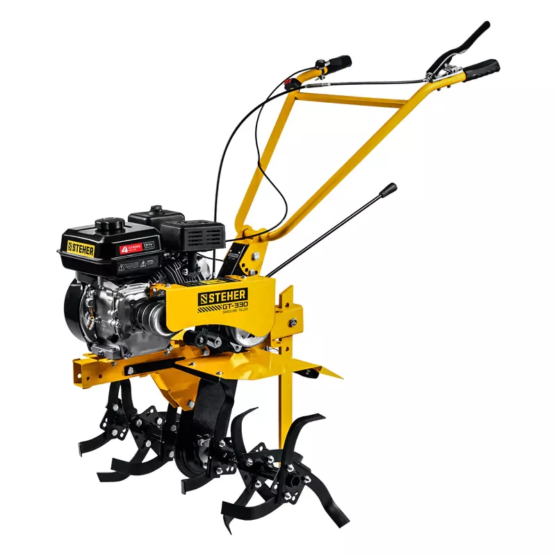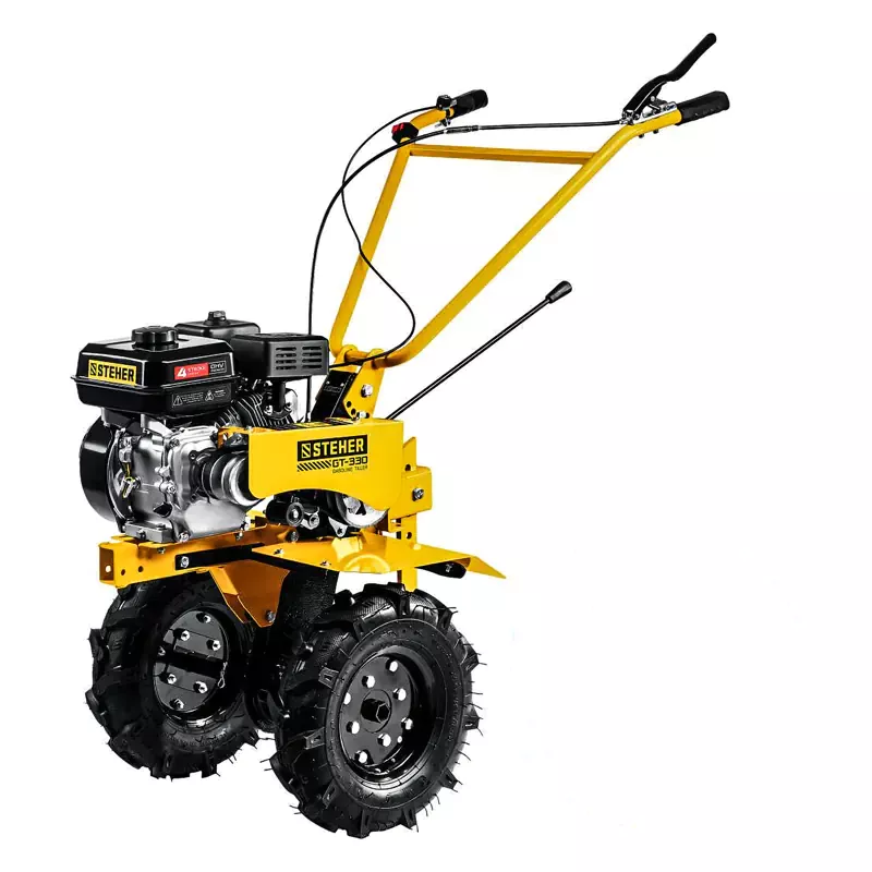 Бензиновый мотоблок STEHER GT-330 — надежный помощник для хозяйственных и агротехнических работ на даче или приусадебном участке площадью 15-20 соток. Маневренная модель с 3-х скоростным чугунным редуктором, комплектом из 18 фрез и 2 колес используется для рыхления и культивации почвы, а при установке соответствующего навесного оборудования применяется для окучивания, выкапывания картофеля, уборки территории, расчистки снега и других работ.