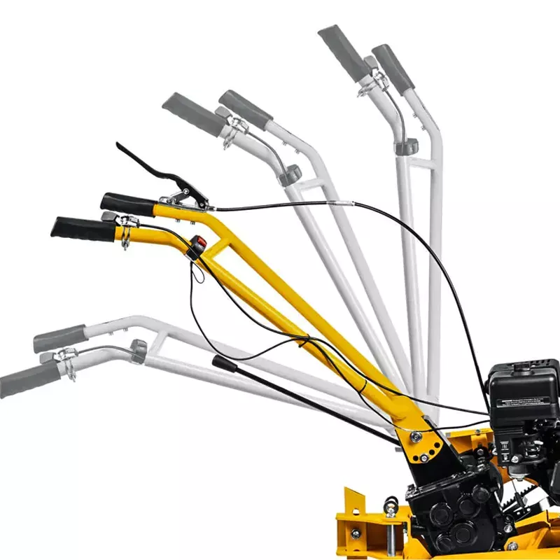Усиленная стальная рама выдерживает поперечные и продольные нагрузки. Элементы управления удобно расположены на руле, который можно отрегулировать по высоте или сложить для компактного хранения. Пневматические колеса большого диаметра повышают проходимость мотоблока. Кожух клиноременной передачи и защитные крылья обеспечивают безопасность во время работы.