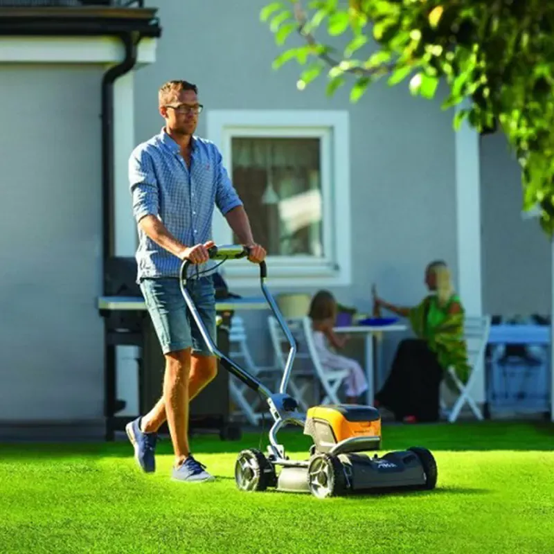 Работает от АКБ (Li-ion), что обеспечивает автономность инструменту, вы не привязаны к стационарному источнику питания или проводам. Газонокосилки серии Multiclip разработана специально для мульчирования скошенной травы.