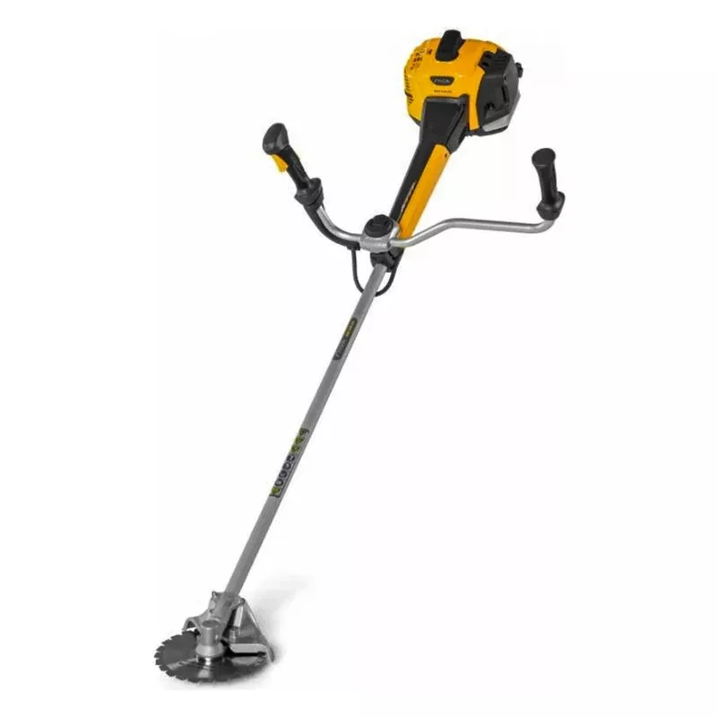Кусторез STIGA SBC 646 DX с двухтактным бензиновым двигателем объемом 44,8 куб. см (полезная выходная мощность 1,25 кВт) и шириной кошения 45 см.