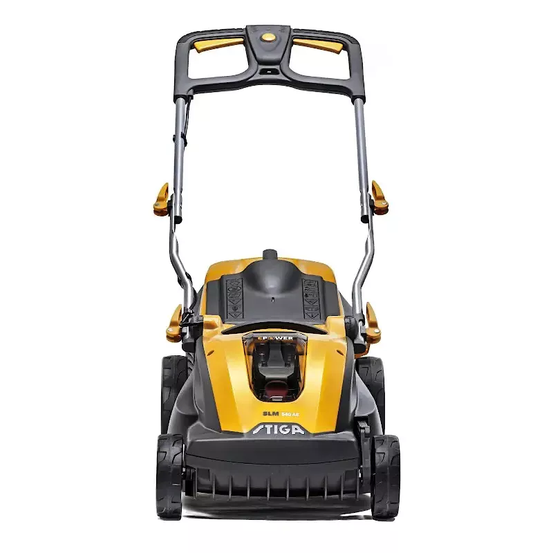 Очень легкая, оснащенная простым ручным приводом, газонокосилка SLM 540 AE Kit не требует лишних усилий для перемещения и намного легче маневрирует среди деревьев и других ландшафтных объектов, чем самоходная модель.