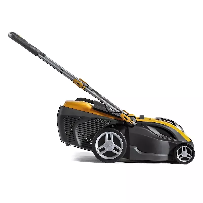 По окончании кошения просто сложите рукоятку для удобного хранения. Или, если хотите, установите рукоятку в положение «S» и повесьте газонокосилку на стену.