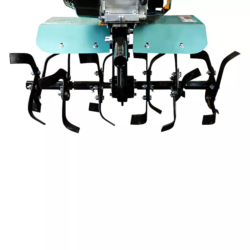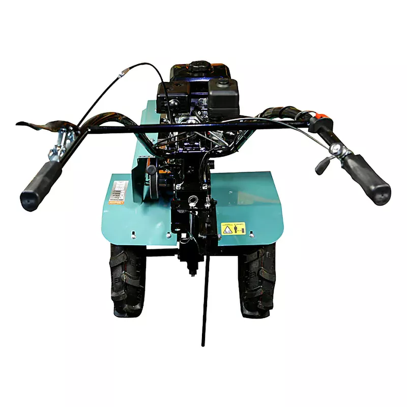 Бензиновый мотоблок оснащен четырехтактным двигателем мощностью 7 л.с. с воздушным охлаждением и ручным стартером. Руль можно регулировать в горизонтальной и вертикальной плоскости. Для удобства культивирования непаханой земли поддерживается пониженная передача на скорости 2,2 км/ч. Включение заднего хода обеспечивает маневренность мотоблока и облегчает его извлечение в случае увязывания в почве. Глубину вспашки легко регулировать путем перемещения сошника вверх-вниз. Продолжительная работа без дозаправки гарантирована благодаря вместительному топливному баку.