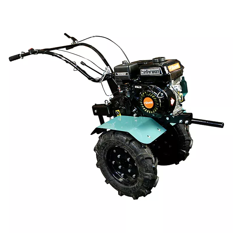 Бензиновый мотоблок Sturm! GK827CI10 имеет широкое применение на приусадебных участках. Универсальная задняя сцепка позволяет подсоединять различное активное навесное оборудование, такое как плуг, картофелекопалка, окучник, рыхлитель и прочее. Кронштейн передней подвески служит для крепления спереди таких устройств, как щетка, снегоуборщик, косилка, лопата-отвал и прочее. Входящие в комплект поставки фрезы обеспечивают вспашку земли на глубину 150–300 мм. Ширина обработки составляет от 600 до 850 мм.