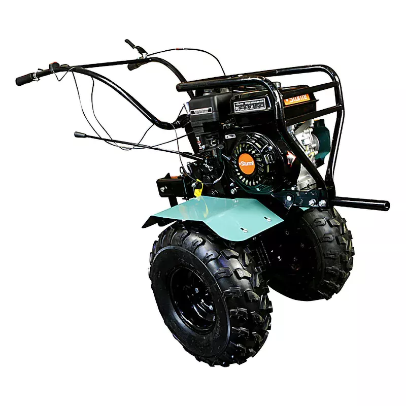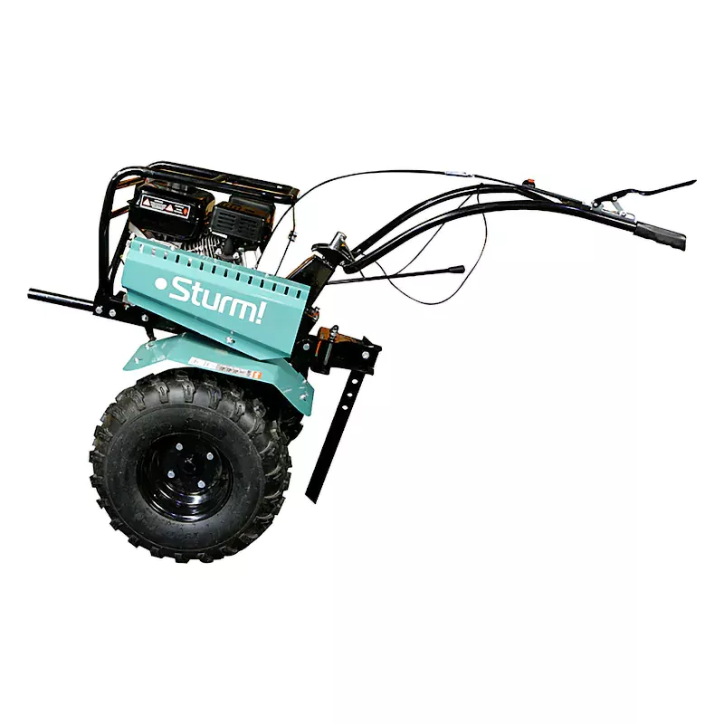 Мотоблок бензиновый Sturm! GK847CI19 — 3-х скоростная модель (понижающая, основная и повышающая) с чугунным редуктором и формованными крыльями, на внушительных колесах 19*7-8. Удобный руль с регулировкой вверх-вниз/влево-вправо.
