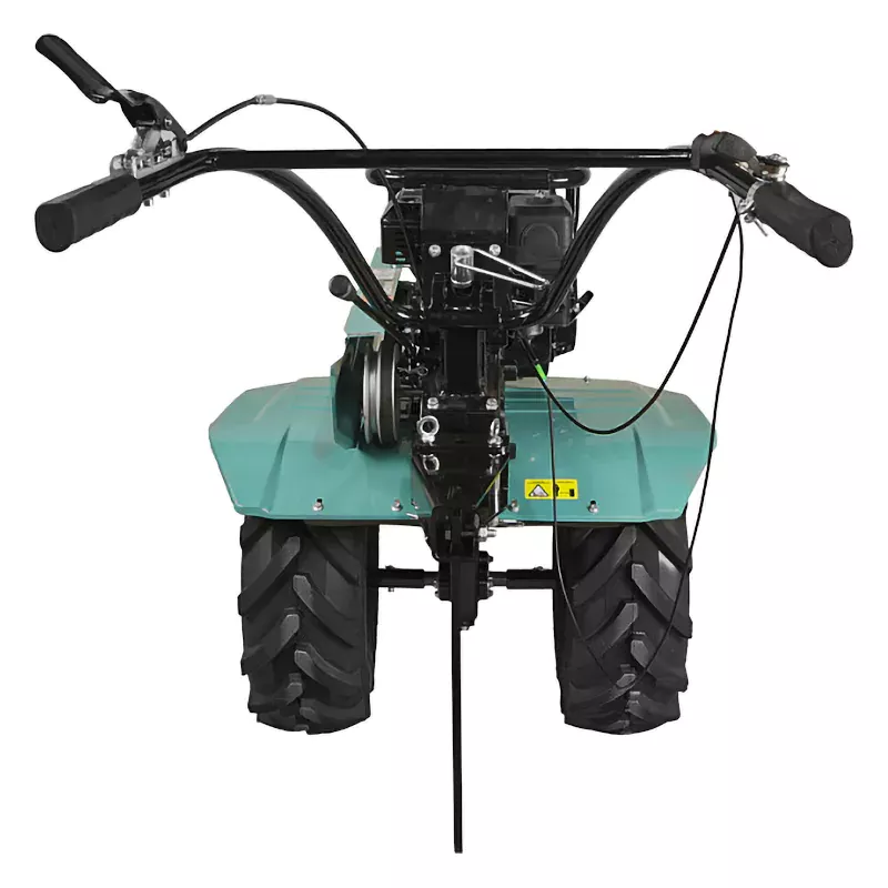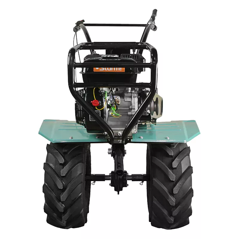 Бензиновый мотоблок допускает навешивание дополнительного оборудования как впереди, так и сзади агрегата. Передача мощности осуществляется с помощью ремня и трехручейкового шкива. Колеса диаметром 48 см с агрессивным протектором XTREME обеспечивают наилучшую проходимость и маневренность. Настраивать положение руля можно как по горизонтали, так и по вертикали, что обеспечивает комфортную эксплуатацию в любых условиях.