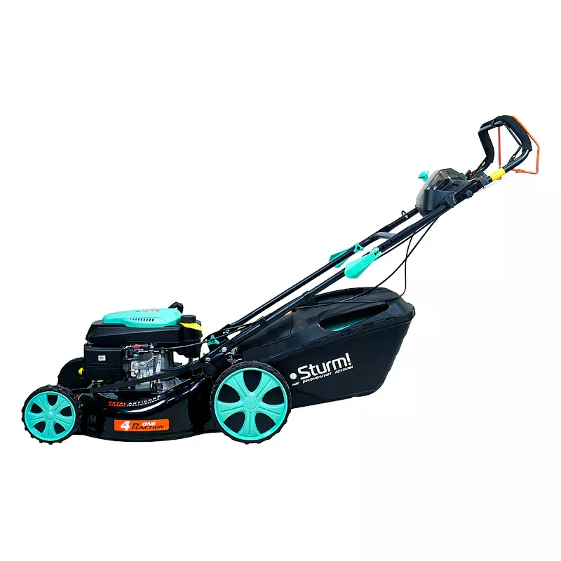 Бензиновая косилка газона Sturm! PL5114S с мощным двигателем 5 л. с. и изменяемой высотой скашивания предназначена для срезания и сбора травы на изменяющемся рельефе. Газонокосилка работает в четырех режимах: боковой выброс травы, задний выброс травы, режим мульчирования и сбор травы с травосборник.
