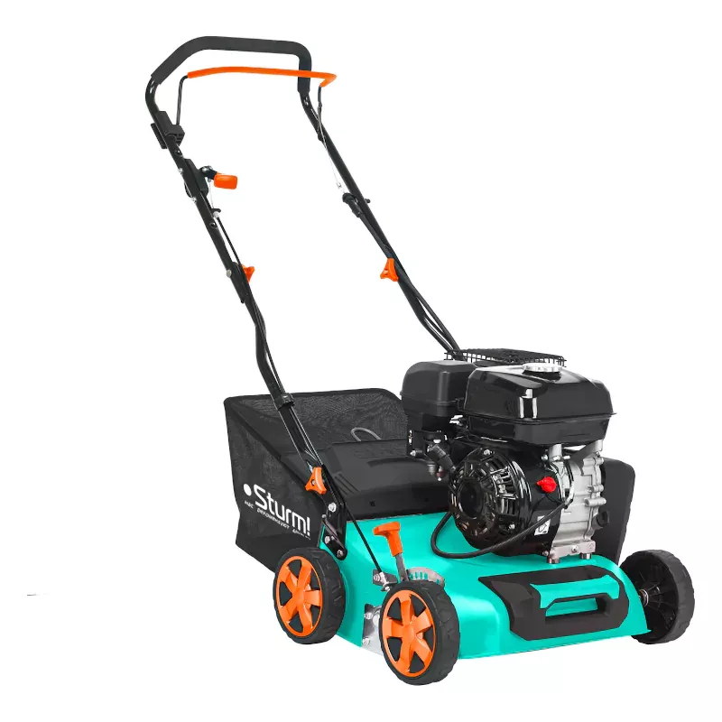 Бензиновый скарификатор Sturm! PS4040 3в1 - скарификация, аэрация и уборка с помощью одного садового инструмента. Надежный, и в то же время мощный скарификатор, поможет эффективно подготовить газон к предстоящему сезону и профессионально ухаживать за ним! Скарификатор отлично подходит для удаления мха и сухой травы с луга, обеспечивая идеально бережную обработку! Это сделает вашу траву намного зеленее, здоровее и сильнее! Таким образом, уменьшается или предотвращается образование мха на поверхности. вашего сада! Благодаря большой рабочей ширине обработки 400 мм и 6 ступенчатой регулировке глубины (-15 мм, -12 мм, -9 мм, -6 мм, -3 мм, + 5 мм), скарификатор легко подстраивать в соответствии с различными требованиями газона. По сравнению с большинством скарификаторов, которые имеют простую регулируемую по высоте ручку, наша инновационная ручка выделяется особой эргономичностью и действительно упрощает регулировку высоты. Бензобак емкостью 3,6 литра обеспечивает двигатель топливом в течение достаточно длительного времени благодаря своим размерам. Объем масляного бака составляет 0,6 литра. 4-тактный двигатель обеспечивает достойную производительность при своих 4 кВт, что соответствует действительно мощным 5,5 л.с.! При этом достигается скорость 3400 оборотов в минуту, при которой 15 ножей и 24 пружины идеально и чрезвычайно бережно помогают очистить газоны от мха, сухой травы и легко скарифицировать газон. Этот процесс возвращает траве биологическую пищу, насыщает кислородом и способствует естественному росту газона. Прочный стальной корпус выдерживает самые жесткие требования. При весе 32 кг скарификатором удобно управлять и под силу перемещать любому человеку. Корзина вмещает 40 литров сухой травы и без затруднений снимается. Большие колеса 7 дюймов, обеспечивают лучшее сцепление с грунтом и удобство в управлении. Еще одной изюминкой является передняя ручка для переноски, благодаря которой очистка садового инструмента выполняется намного проще, чем в аналогичных моделях.