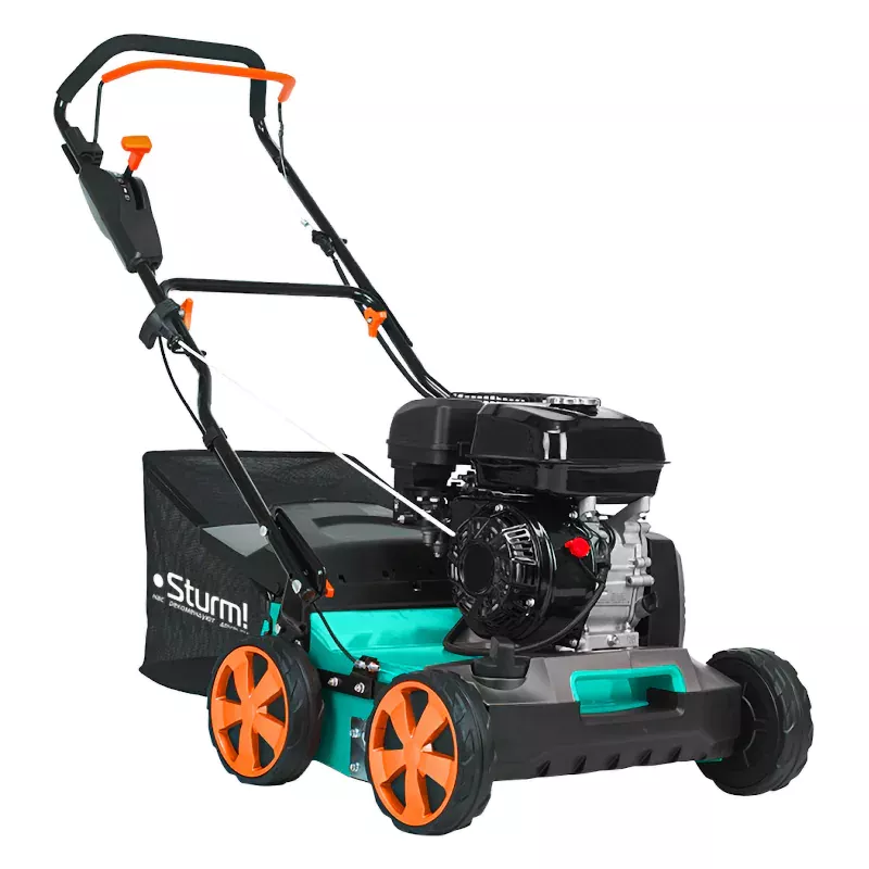 Бензиновый скарификатор Sturm! PS4045 обеспечивает качественный профессиональный уход за газоном. Устройство выполняет сразу несколько задач: рыхление, проветривание почвы, а также удаление с поверхности мусора, мха, сорных семян, опавшей листвы, сухой или сгнившей травы. Такая обработка улучшает проникновение воды, кислорода и солнечных лучей в травяной покров, предотвращая преждевременное увядание газона и образование в нем прогалин. Скарификатор оснащен четырехтактным бензиновым двигателем мощностью 5,5 л.с. с ручным стартером. Комплектуется травосборником вместимостью 45 л.