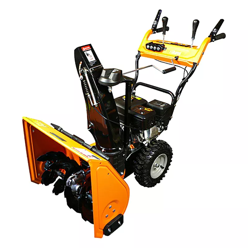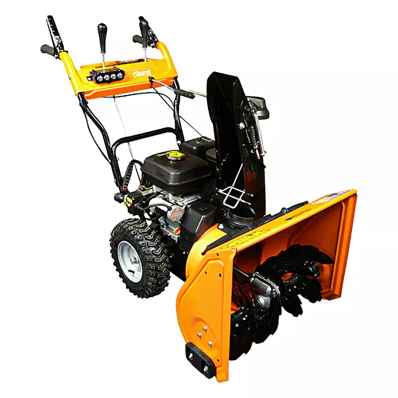 Благодаря встроенному электростартеру запуск снегоуборщика максимально удобен и прост. При необходимости, пользователь может также осуществлять запуск и с помощью ручного стартера.