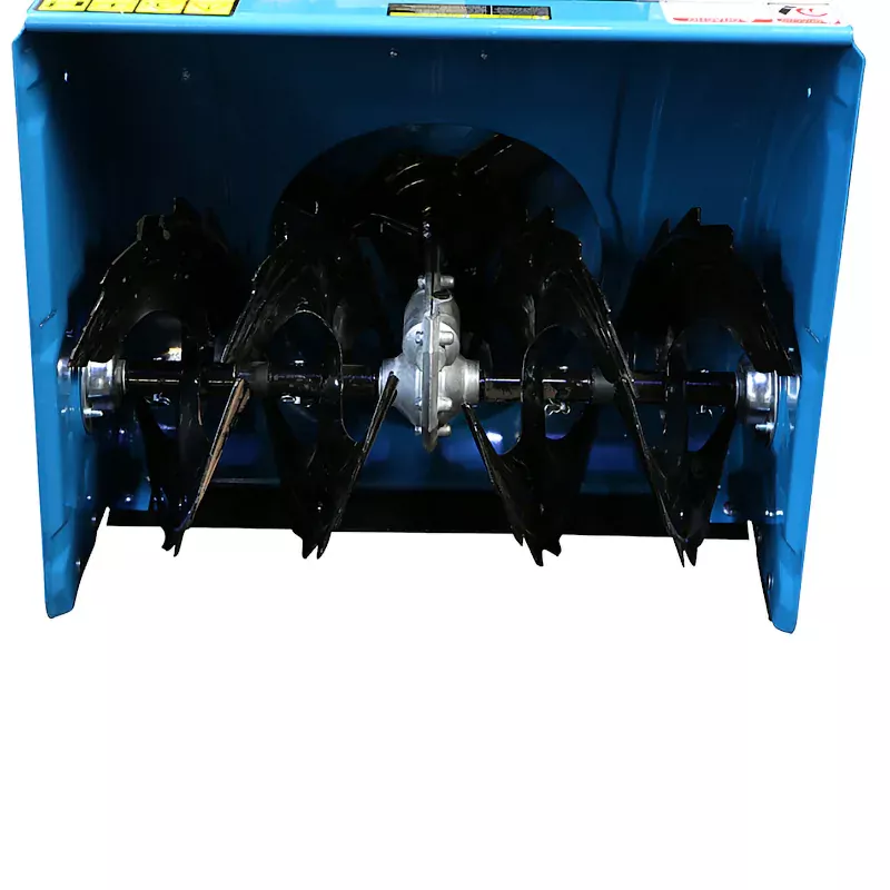 Зазубренный шнек первой ступени успешно измельчает слежавшийся снег и может справиться даже с настом толщиной до 2 см. Высокооборотистая вторая ступень снегоуборочного агрегата отбрасывает снег на расстояние до 12 м.