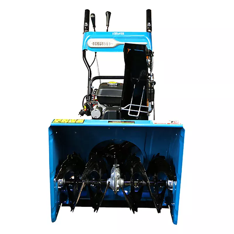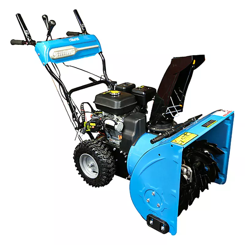 Широкие колеса с развитым анти-снежным протектором позволяют уверенно двигаться по рыхлому снегу. Широкий набор скоростей: 6 вперед и 2 назад для настройки оптимальной скорости движения снегоуборщика.