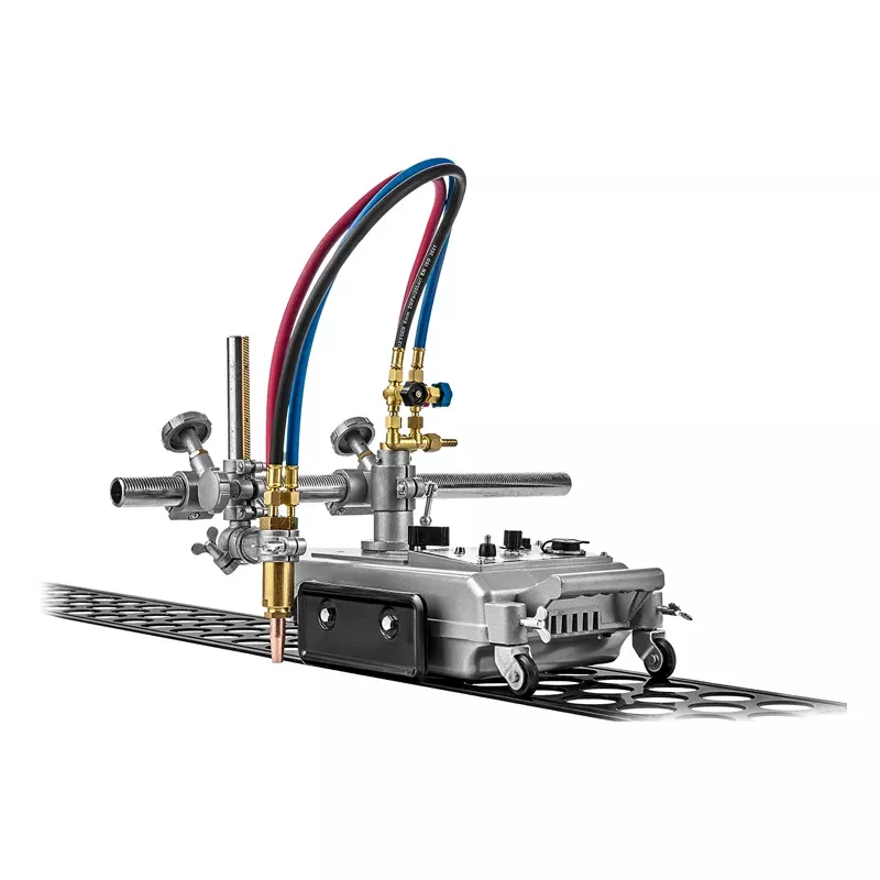 Резка выполняется газокислородным резаком, установленным в держателе на самоходной тележке. Зажим крепления резака для машин термической резки имеет реечный механизм, который позволяет перемещать резак, регулировать его высоту установки над поверхностью металла, а также устанавливать угол наклона резака в пределах ±45°. Для фиксации резака предусмотрены винты.