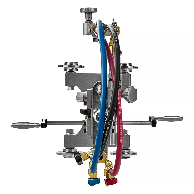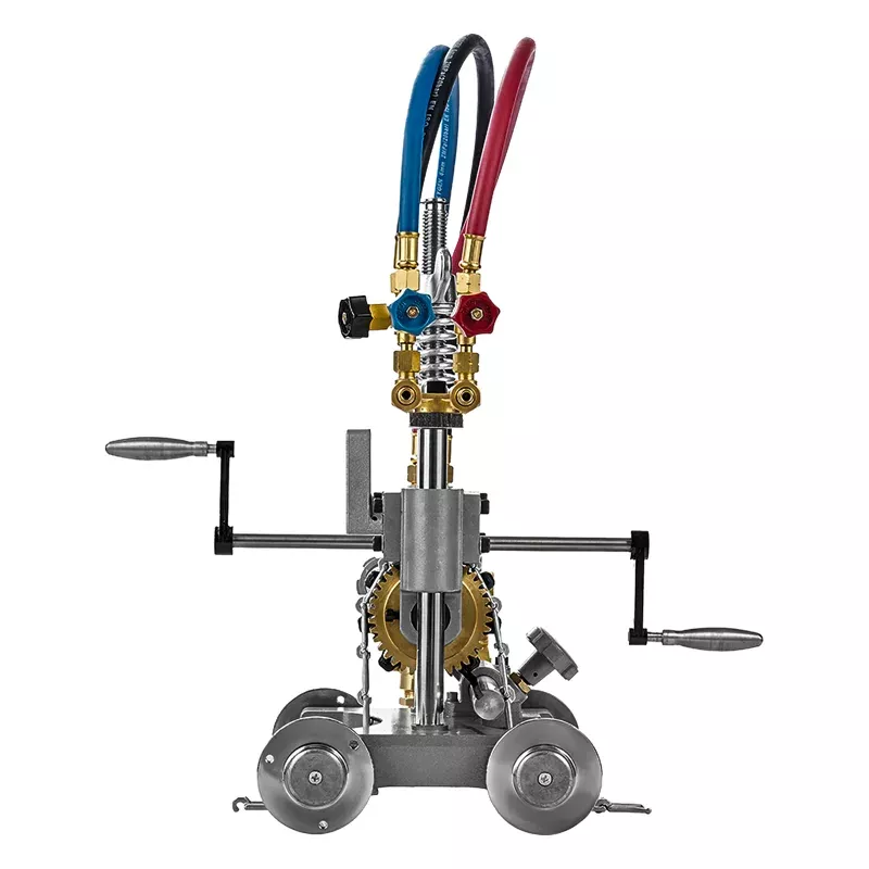 Резка выполняется одним резаком с возможностью регулирования положения резака в разных плоскостях, а также его угла наклона и высоты над поверхностью металла. Машина перемещается и удерживается на трубе с помощью специальной цепи.