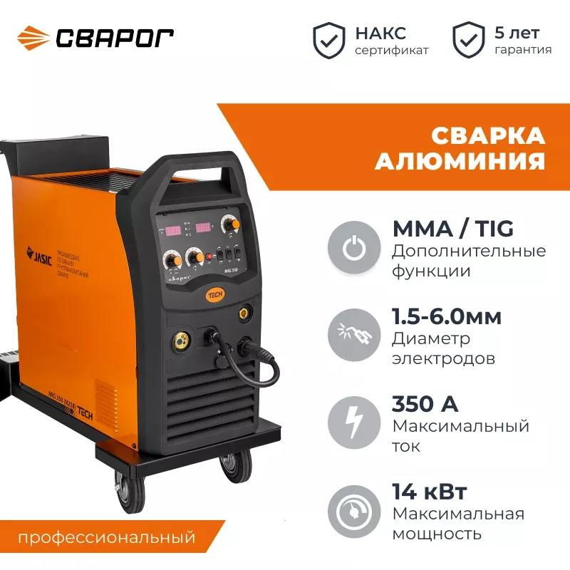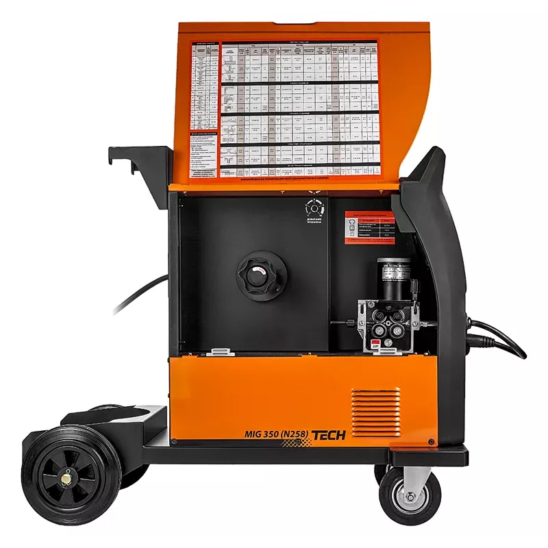 Сварочный инвертор TECH MIG 350 (N258) позволяет сваривать низкоуглеродистые, среднеуглеродистые, высокоуглеродистые, высоколегированные и нержавеющие стали, а также цветные металлы и сплавы. Способом сварки TIG Lift можно дополнительно работать с медными, бронзовыми, латунными, титановыми сталями и сплавами.